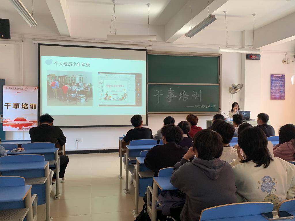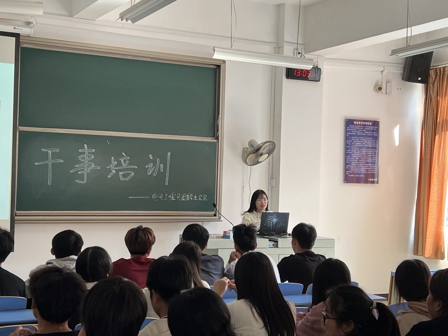 11月8日中午,电子工程学院在32204教室开展“工作学习两不误,鱼与熊掌可兼得”主题干事培训,学院2022级辅导员陈思宇担任主讲人,两委全体成员共同参与。