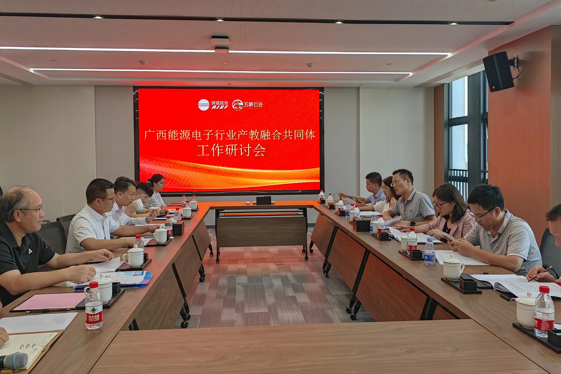 同时,调研组与润建股份公司、广西电力职业技术学院就广西能源电子行业产教融合共同体项目召开了工作研讨会。会议就首届共同体理事会成员名单进行了深入讨论,对共同体的章程、首届理事会全体成员大会议程等进行了细致研讨。