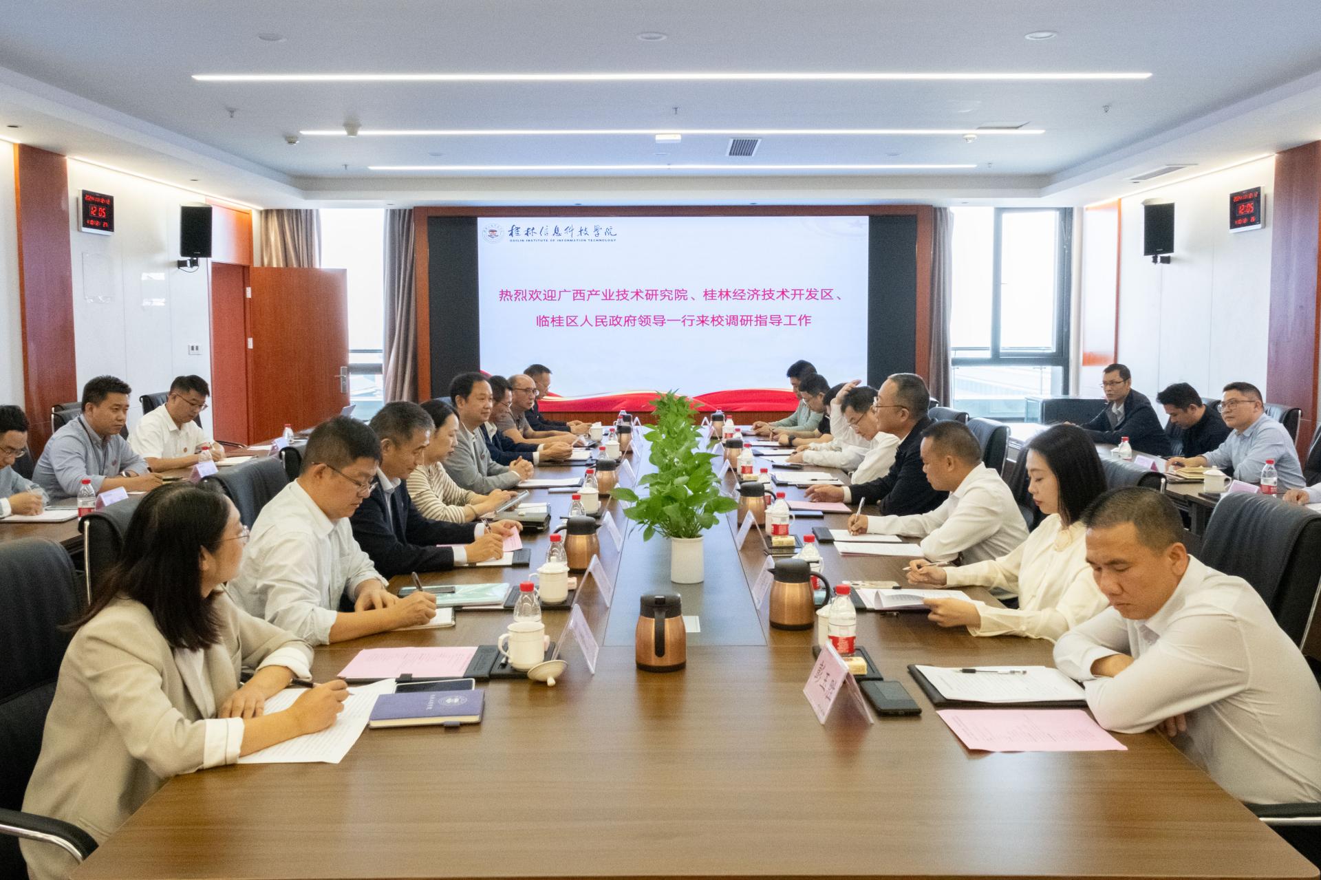 11月12日上午,广西产业技术研究院副院长、轮值院长杜文宏,桂林临桂区区长、桂林经开区管委会主任何兵一行到我校进行座谈交流。学校董事长罗欣、董事罗捷、副校长刘跃峰、党委副书记李飞及相关部门负责人参与座谈会。