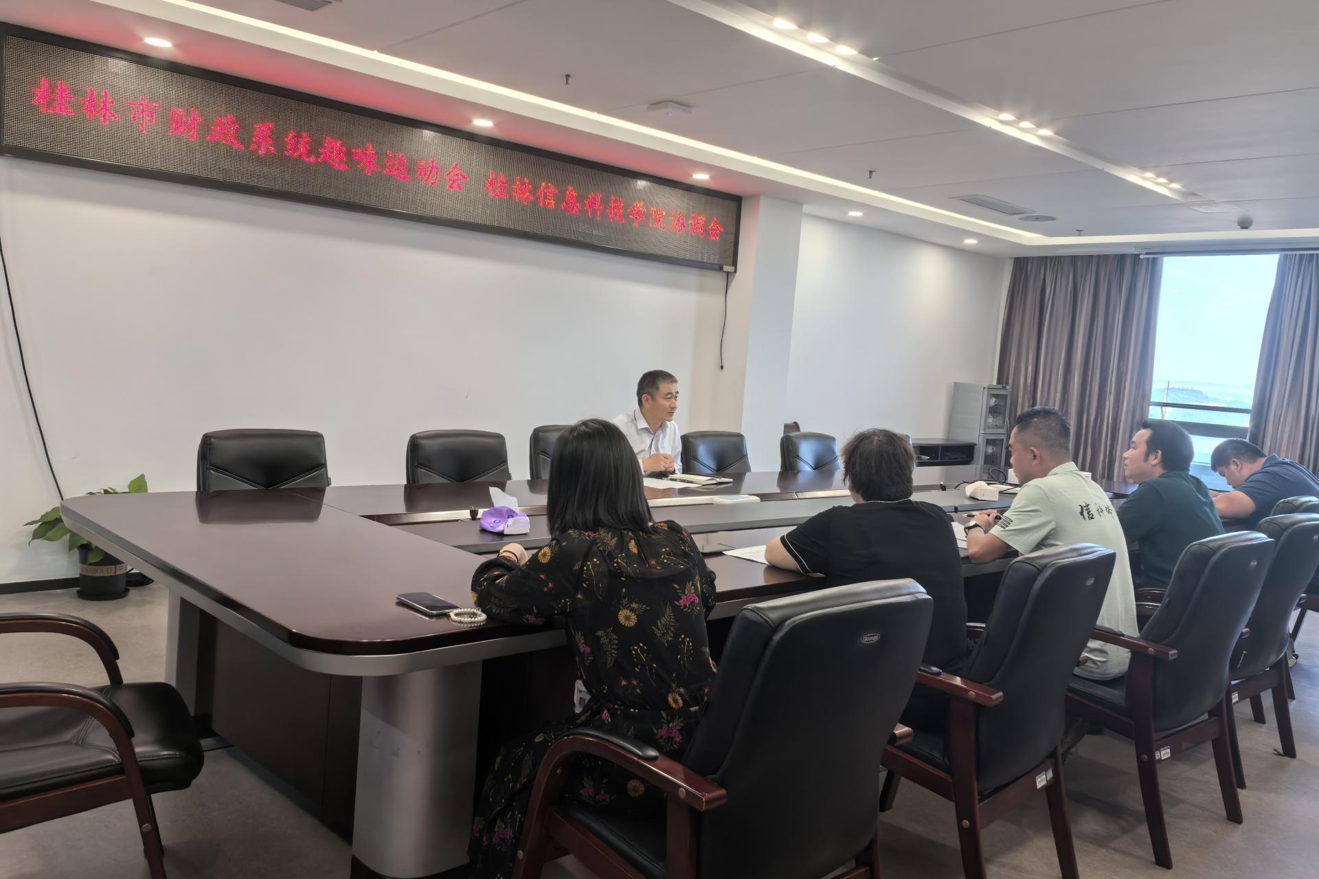 前期,桂林市财政局领导到我校协调赛事筹备工作,针对赛事筹备、赛事执行、宣传和安全保障工作等进行沟通交流。学校党委副书记李飞出席调研会,对本次赛事在我校举办表示大力支持,并做出了明确分工,保障此次赛事顺利进行。体育与健康学院、后勤服务处、保卫处和宣传部各司其职,确保为本届体育赛事提供技术支撑和各项保障服务。