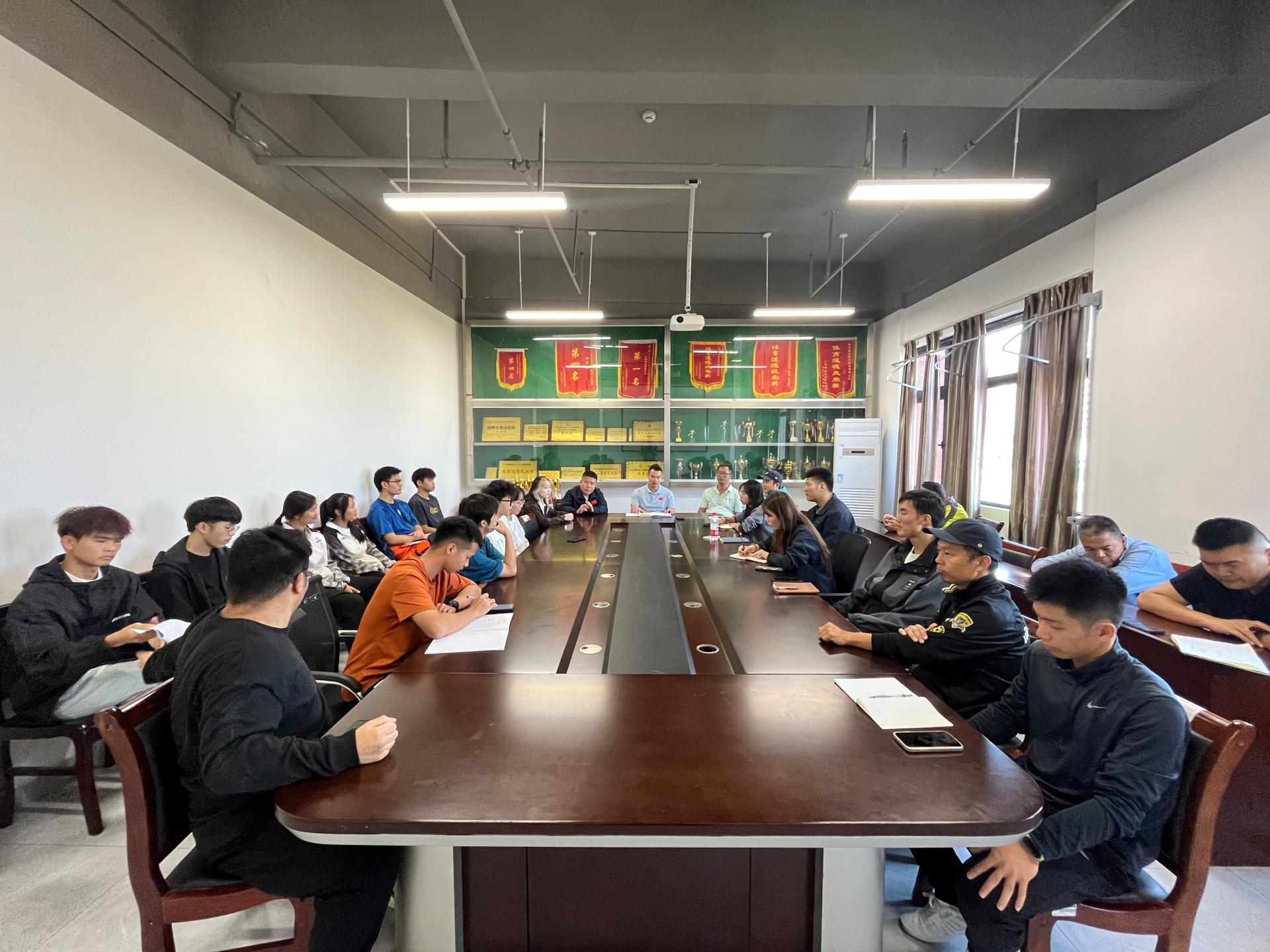 11月6日中午,体育与健康学院在行健楼205会议室开展师生座谈会,此次座谈会由体育与健康学院大球教研室主任刘卓主持,综合教研室主任黄国阳、休闲与健康教研室主任卓霖、各教研室教师代表及学生代表参加此次座谈会。
