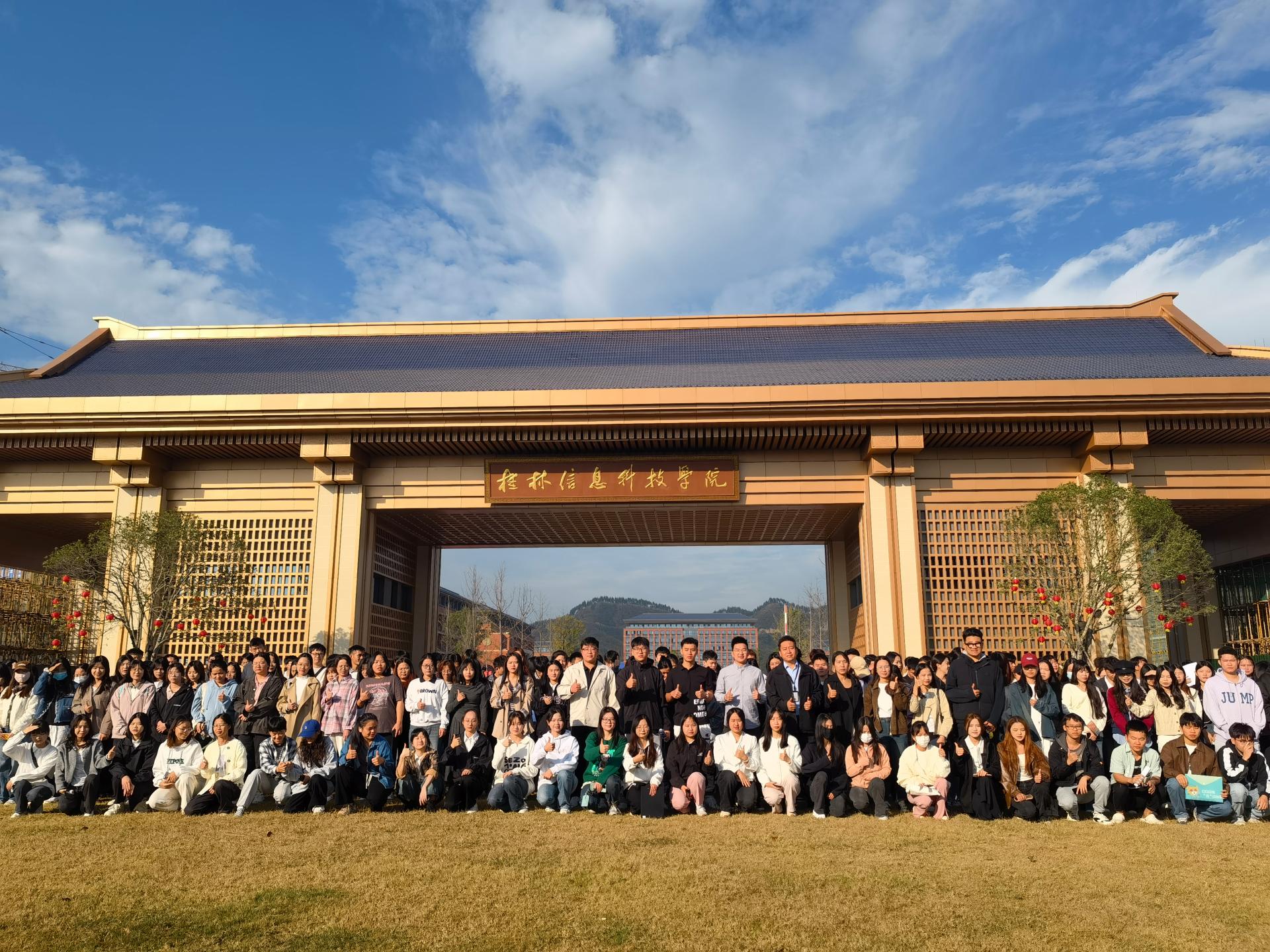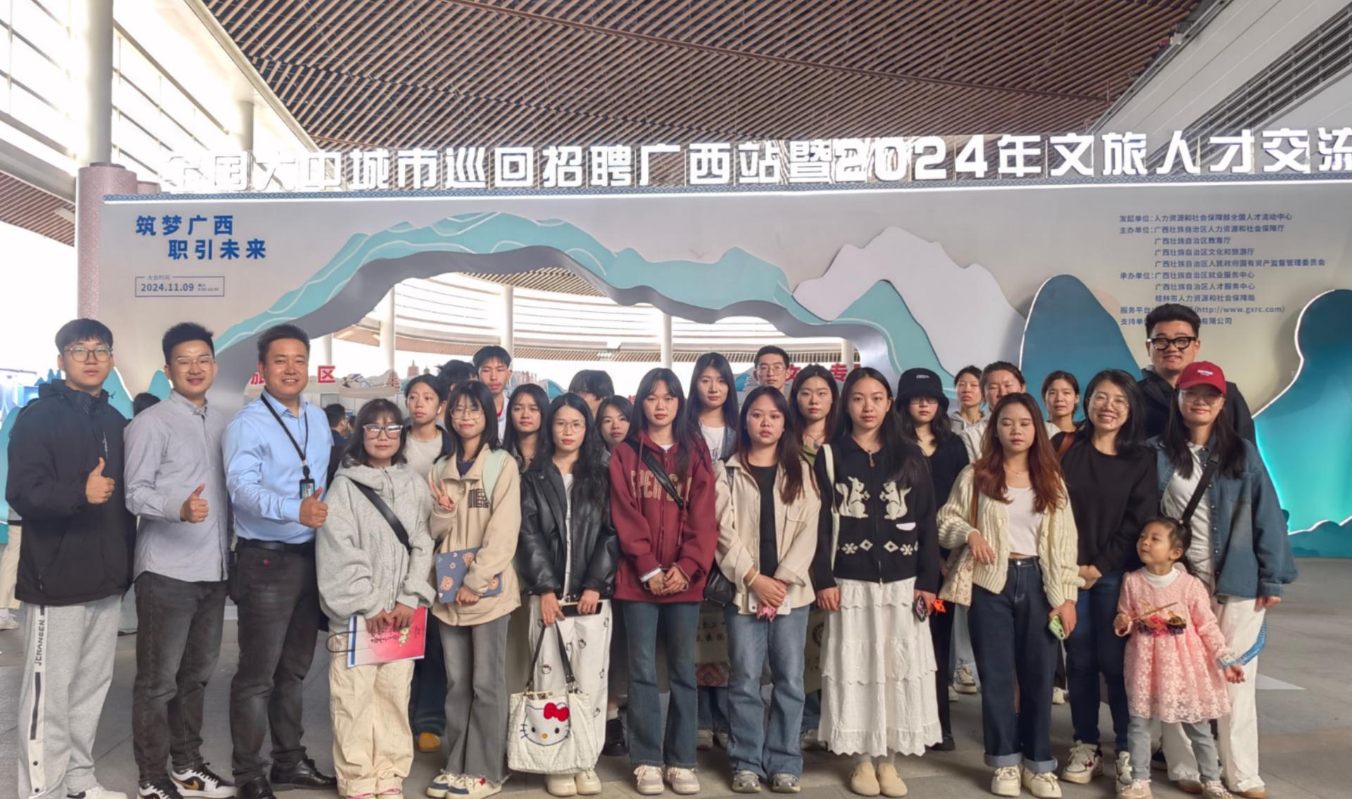 11 月 9 日,全国大中城市巡回招聘广西站暨 2024 年文旅人才交流大会在桂林国际会展中心盛大举行,250 余家企业参会,提供 7000 余个就业岗位。我校高度重视此次招聘活动,就业指导服务中心主任、校企合作处处长李晓健亲自带队,相关工作人员及各二级学院毕业班辅导员全力配合。近 500 名应届毕业生乘坐学校统一安排的专车抵达会场。