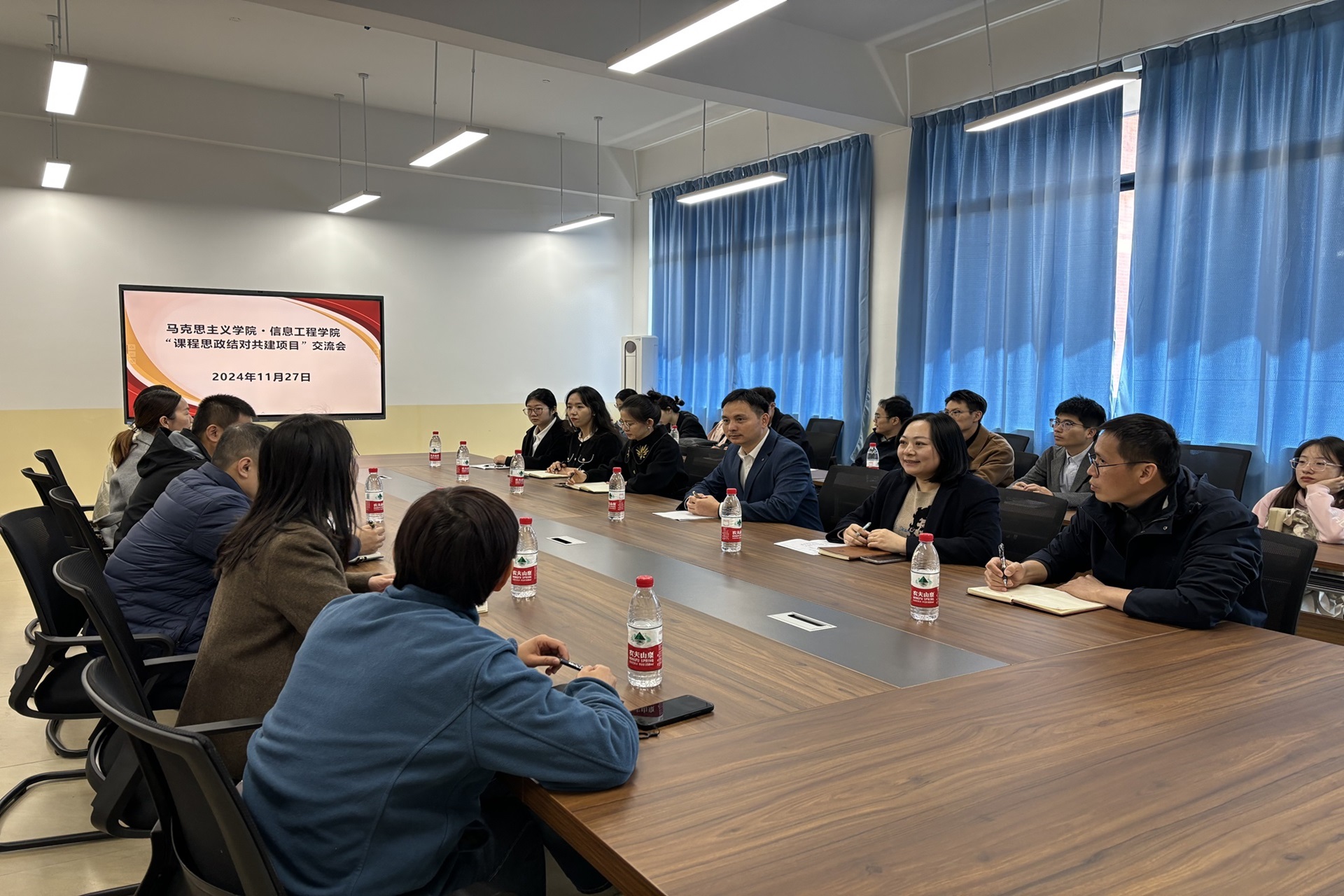 11月27日中午,皇冠正规娱乐平台与马克思主义学院在B513-2会议室召开“课程思政结对共建项目”交流会。马克思主义学院院长助理赖学良老师、皇冠正规娱乐平台院长助理刘欣老师及概论教研室、课程思政项目立项的教师参会。