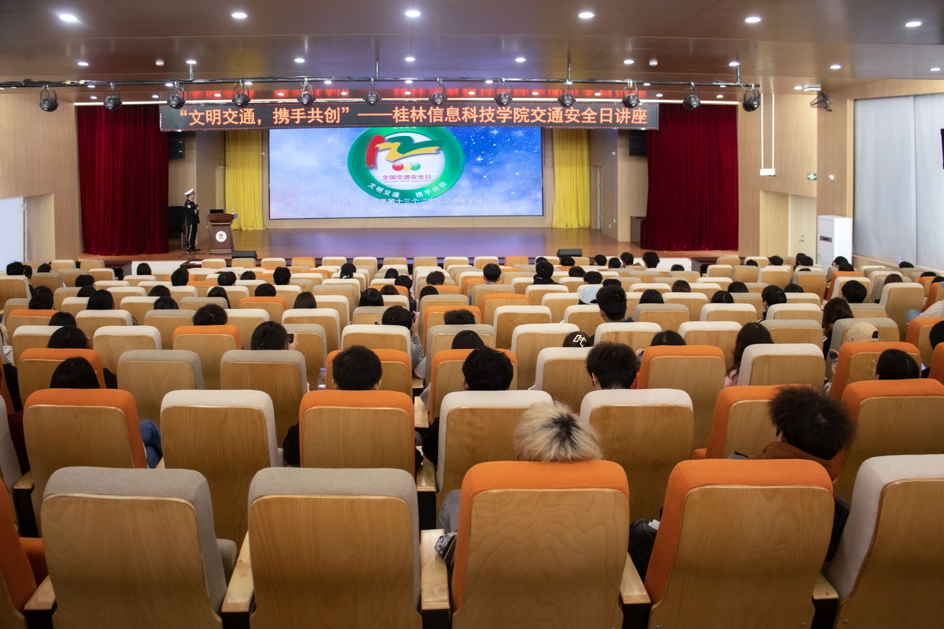 2024年12月2日是第十三个“全国交通安全日”,为加强师生的交通安全意识,预防和减少交通事故的发生,营造安全、和谐的校园环境。学校联合桂林市公安局临桂分局交通管理大队举办“文明交通,携手共创”交通安全知识讲座。