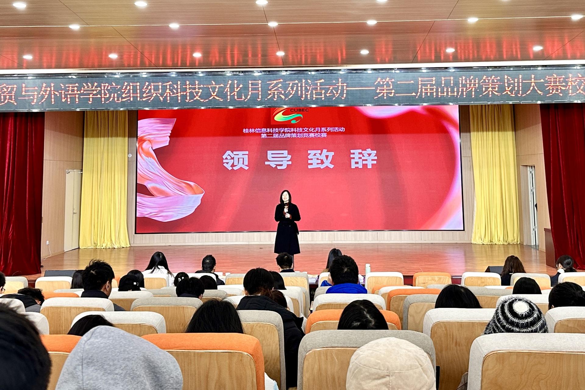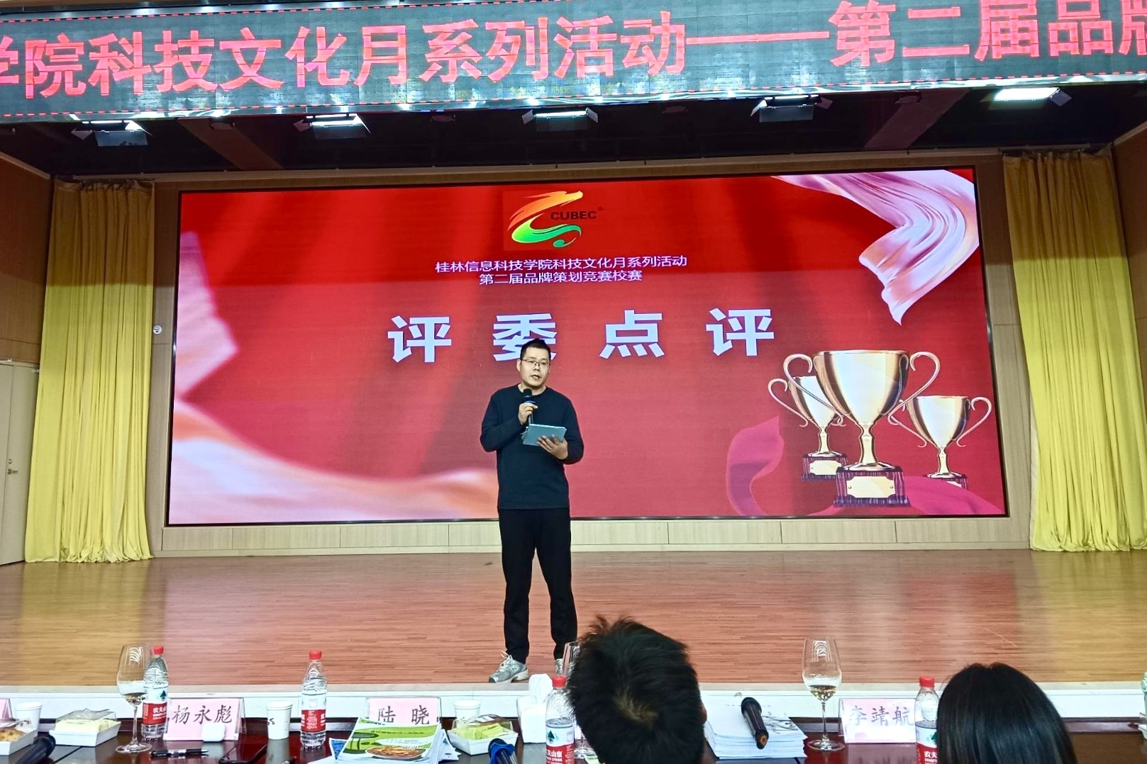 12月15日,学校科技文化月系列活动--皇冠正规娱乐平台第二届品牌策划竞赛校赛暨2025年全国高校商业精英挑战赛品牌策划竞赛全国总决赛的校内选拔赛在F107报告厅举行。外贸与外语学院副院长陆晓、副院长赖安、酒店管理教研室杨永彪博士、国际商务教研室主任高宇老师和商务英语教研室主任李靖航老师担任本次竞赛评委。