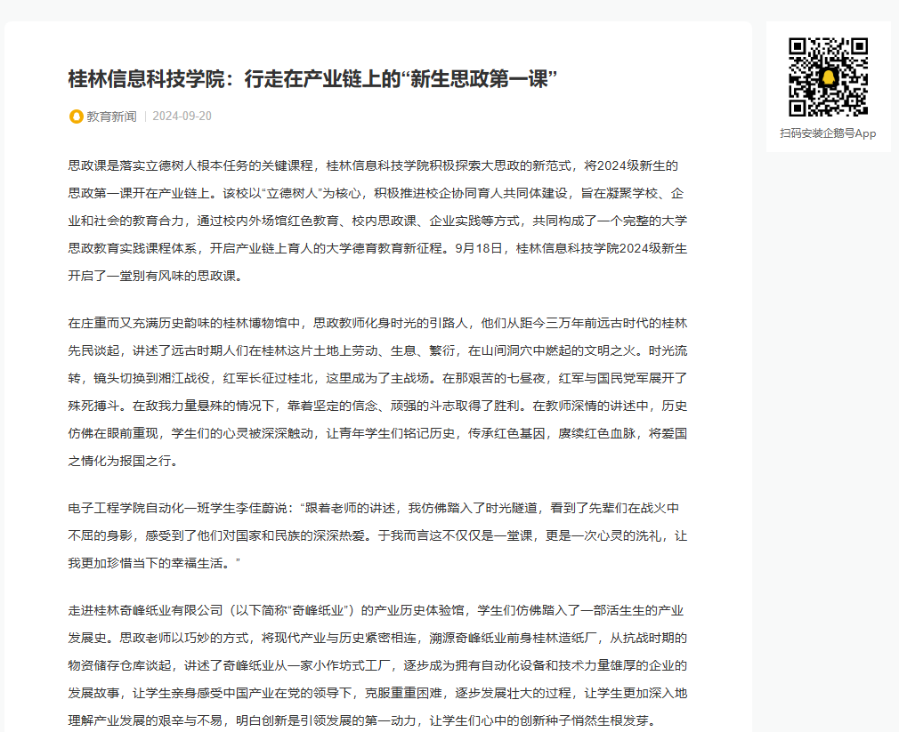 教育新闻链接:皇冠正规娱乐平台:行走在产业链上的“新生思政第一课”_腾讯内容开放平台 (qq.com)
